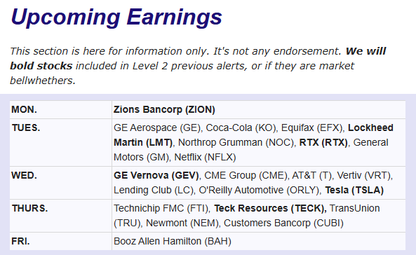 In the week ahead, investors will be balancing earnings, inflation, and global macro data against the backdrop of a still-frozen U.S. government. The federal shutdown is expected to enter its fourth week, but traders will still get one key release: Friday’s CPI report, where headline inflation is projected to rise to 3.1% while core inflation holds steady at 3.1%. Alongside that, fresh readings on S&P Global PMIs, existing home sales, and the Chicago Fed activity index will offer clues on how the economy is holding up under higher rates. Corporate earnings will dominate the headlines, with major reports from Tesla, Procter & Gamble, General Electric, Coca-Cola, Netflix, IBM, AT&T, Verizon, Intel, Ford, and Blackstone expected to drive sector-specific volatility.