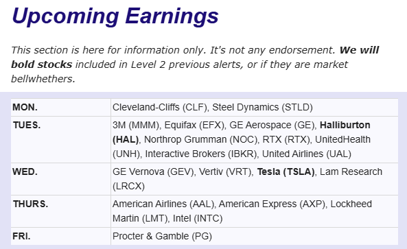 This week also brings a heavy earnings slate, with key reports from Tesla, Intel, UnitedHealth, American Express, and Procter & Gamble. These results will give a clearer read on how companies are handling shifting costs and consumer behavior.