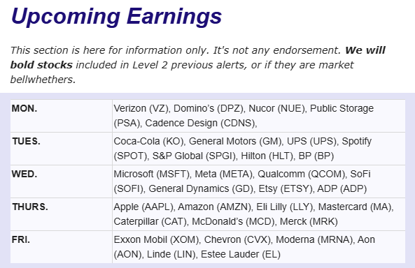 Looking ahead, the key catalysts are Iran headlines, mega-cap tech earnings, energy majors, Fed policy, GDP, PCE, and ISM.
