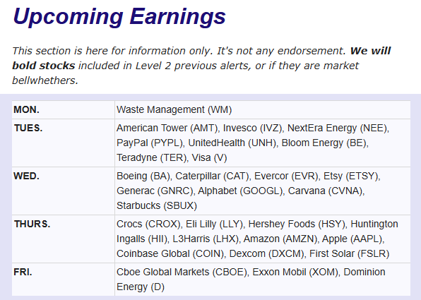 Earnings will dominate headlines as Big Tech steps to the plate — reports are due from Microsoft, Apple, Alphabet, Meta, Amazon, Visa, Mastercard, UnitedHealth, NextEra, Eli Lilly, AbbVie, ExxonMobil, and Chevron.